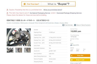 Yahoo however provide a recognisable internet auction service, and as we’re using bike letter/number combinations in the search terms we don’t need to worry about needing to know Japanese to get results (more on that elsewhere in the blog, because I have saved some Japanese text for various bike parts to make the whole experience even better!)